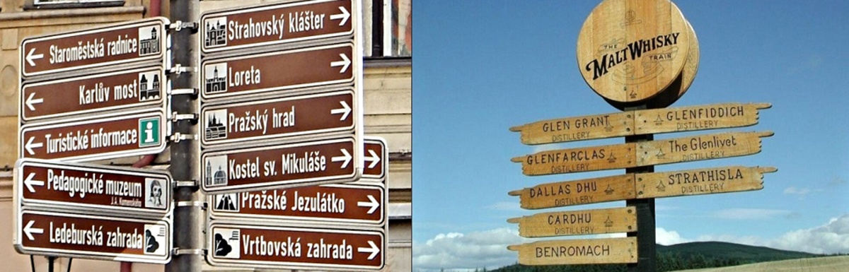Rozcestníky jsou různé - stačí se jen podívat na ten pražský a skotský