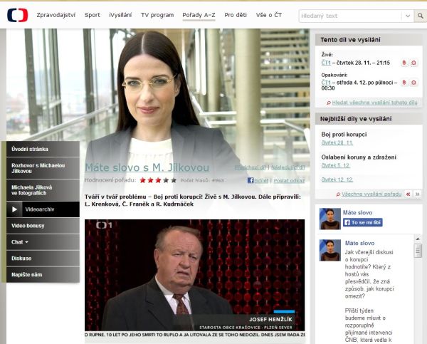V televizním pořadu M. Jílkové Máte slovo ve čtvrtek 28. listopadu 2013 byl jedním z 6 hlavních účastníků i rozhořčený občan, starosta Krašovic (slovy M.J.) a spolužák - Pepík Henžlík.